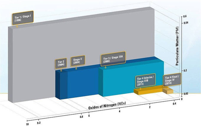 Since the late 90's engine manufacturers have been required to meet a series of emission benchmarks. These benchmarks are commonly known as Tier I, II, III, Intern Tier IV and Tier IV Final.